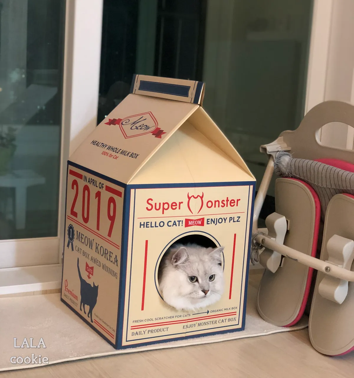 쿠키는 수직형 스크래쳐를 좋아해서 골라본 디자인이고요. 안쪽에서 쉬는 공간 바닥도 스크래쳐라 잘 뜯고 즐기더라고요.