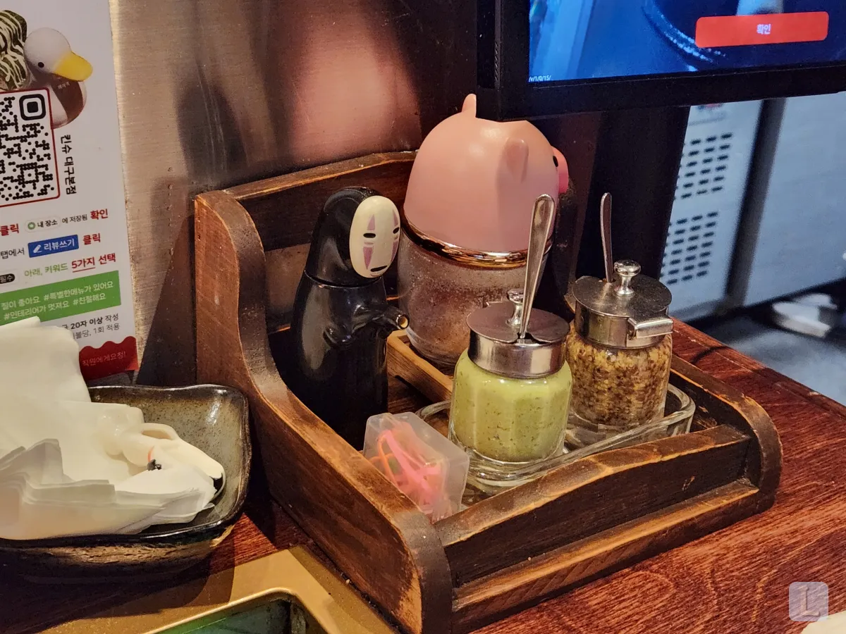 가오나시는 간장입니다 ㅋ 가오나시의 머리를 잡고 부어야 해요~